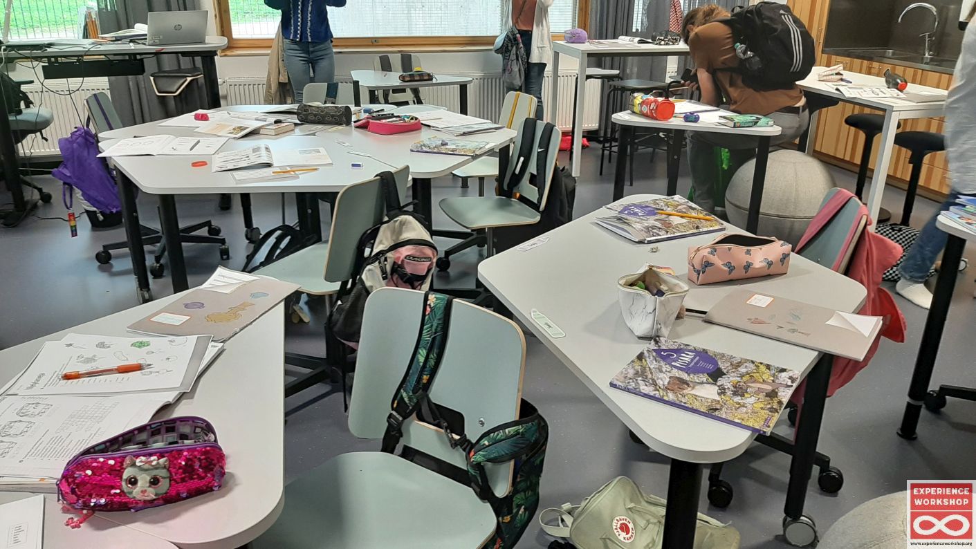 It might strike as new, that many of the classroom spaces are only separated by a flexible wall, so that groups can share the space and then separate again. Flexibility is anyway a core idea of the building (and current school design measurements in Finland). It allows small group work and concentration on children with learning difficulties.
