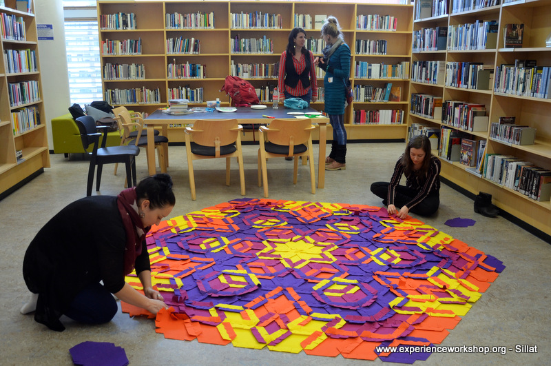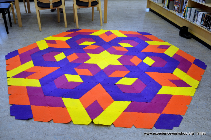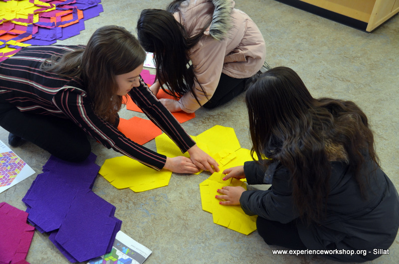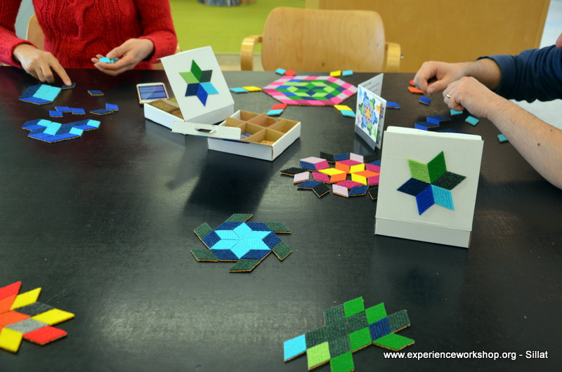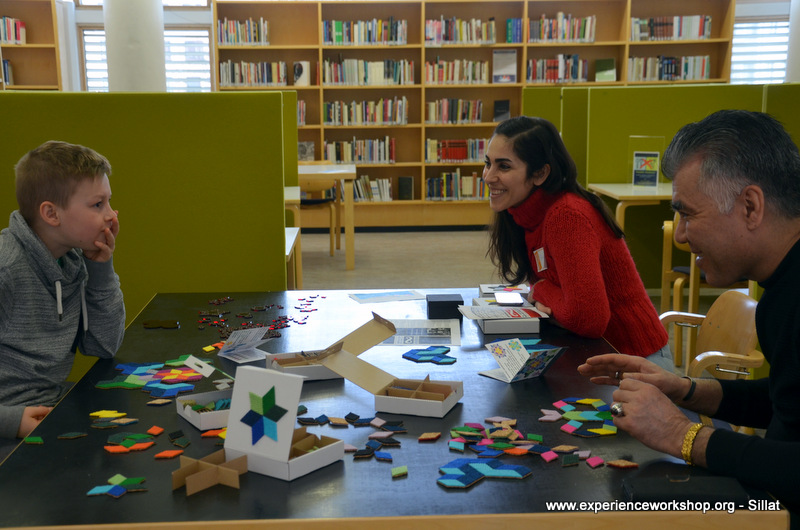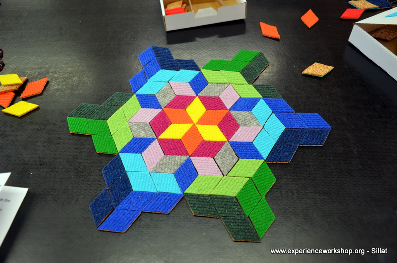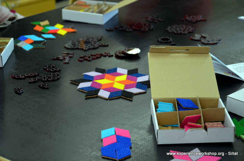A table full of CaraWonga mosaic sets and a special set of Islamic girih (or knot) to challenge minds used to puzzles (we thank Sahar Abdolmalekian for instructing this workshop).