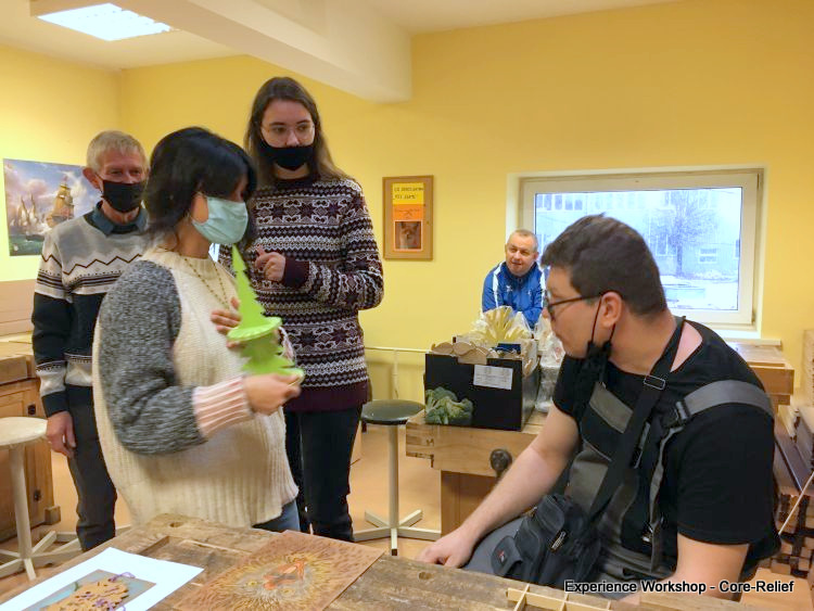Currently, expert craft practitioners hand on handicraft traditions to people with physical and/or emotional challenges, and one student hands on a thank you for our visit.