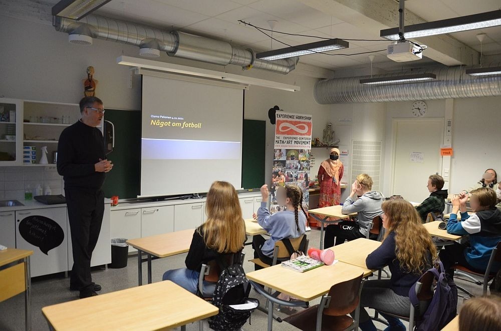 Oppilaat saivat tehtäväkseen rakentaa “klassisen jalkapallon” (eli matematiikan kielellä typistetyn ikosaedrin) mallin joko Suomen sinivalkoisissa tai Ruotsin sinikeltaisissa väreissä (Ruotsi voitti kisan). Luonnossa typistetyn ikosaedrin rakenne esiintyy fullereenimolekyylissa, josta grafeeni, yksi luonnon vahvimmista aineista, muodostuu. Yhtymäkohta ruotsinkieliseen kulttuuriin saatiin Tim Sparvista. Puhetta oli myös lähestyvän Kustaa II Aadolfin muistopäivän 6. marraskuuta merkityksestä. Päivän työskentelyyn osallistui myös indonesialainen matematiikan didaktiikan professori Farida Nurhasanah.
