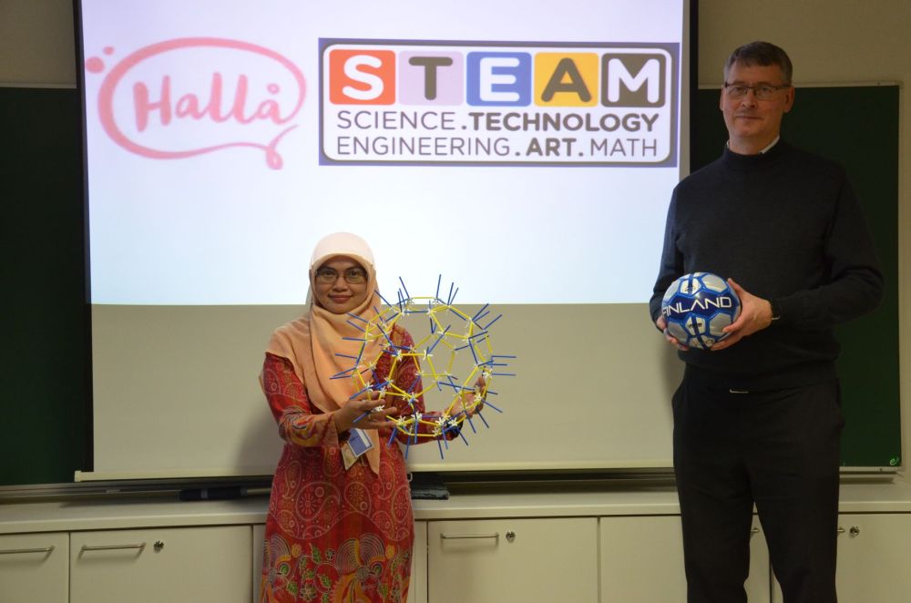 In nature, the structure of the truncated icosahedron occurs in the fullerene molecule from which graphene, one of nature’s strongest substances, is formed. The confluence with Swedish-language culture came from Tim Sparv. There was also a talk on the significance of the upcoming Gustav II Adolph Memorial Day on 6 November. Farida Nurhasanah, an Indonesian professor of mathematics didactics, also took part in the day’s work.