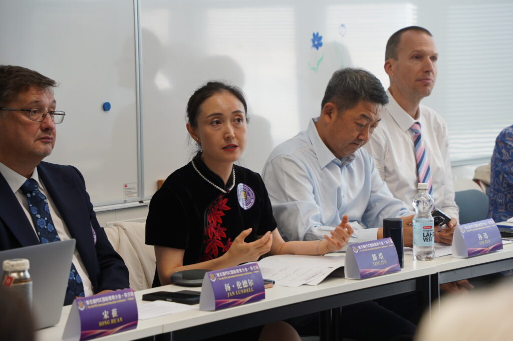 While these high-level academic discussions unfolded, a parallel hands-on learning experience was taking place. Selected Chinese and Finnish students participated in a STEAM workshop led by teacher Matias Kaukolinna. This session was followed by student project showcase with real life student AI assessment tools connecting both participants of the round table discussion and students in the main auditorium.