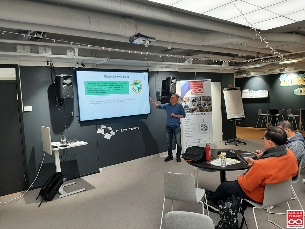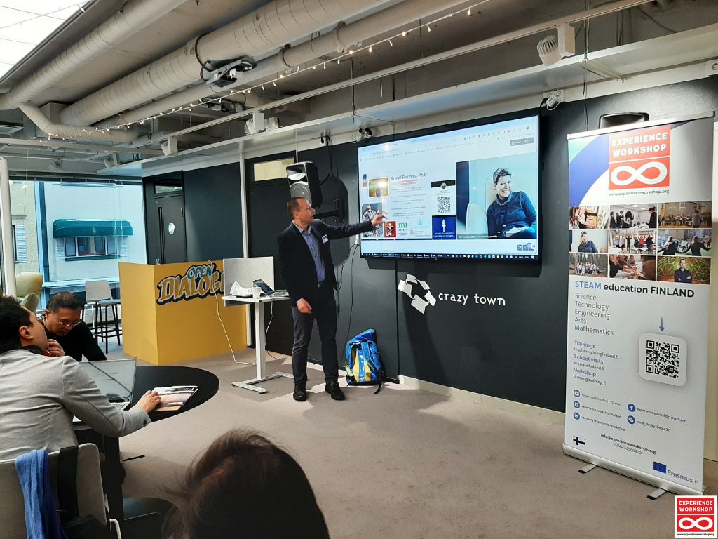 Dr. Kristóf Fenyvesi and Nora Somlyódy from Experience Workshop warmly welcomed the group at Crazy Town Jyväskylä, a creative space for entrepreneurship and innovation.