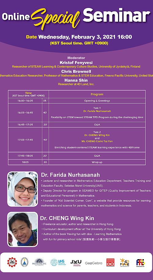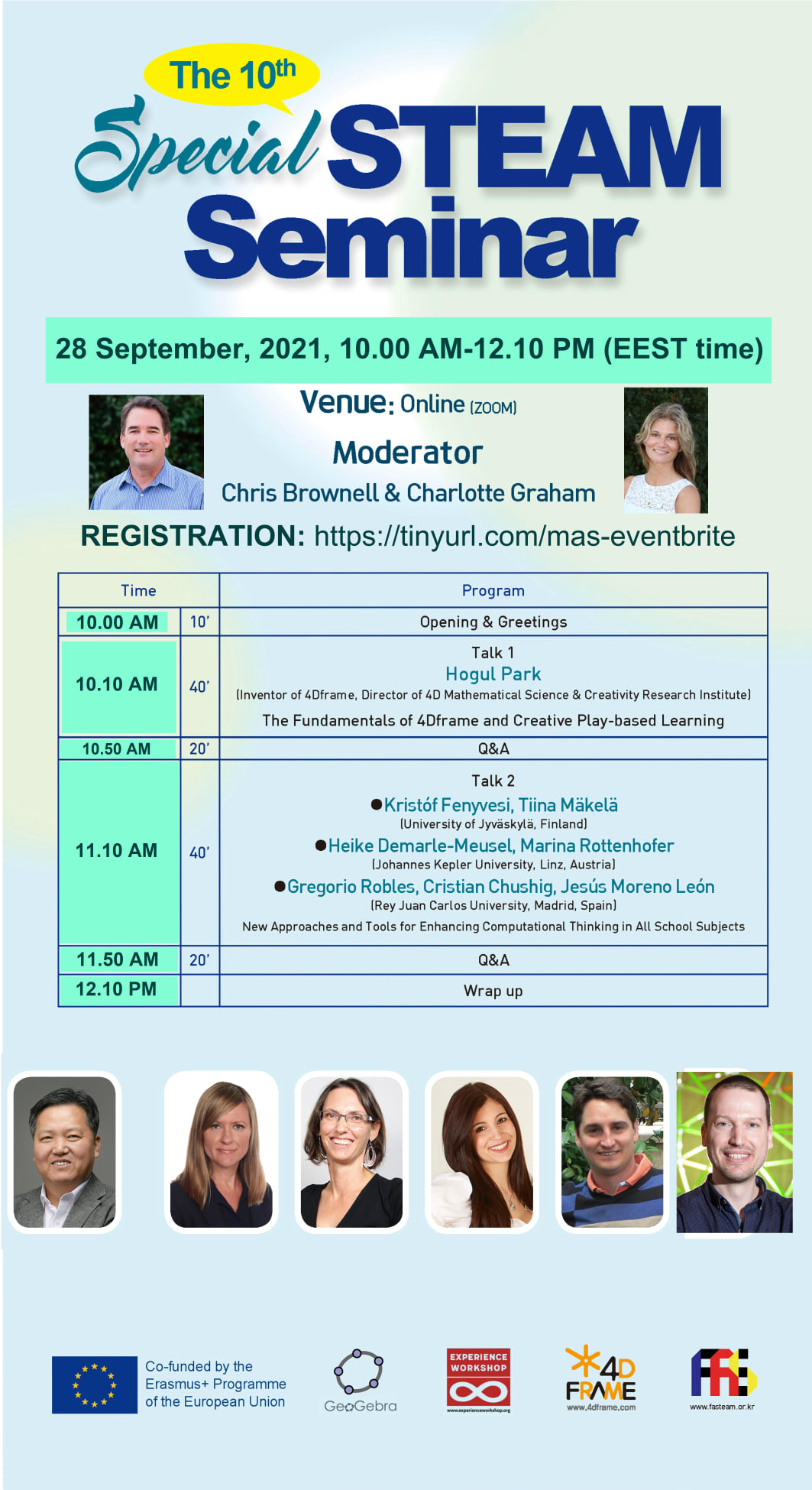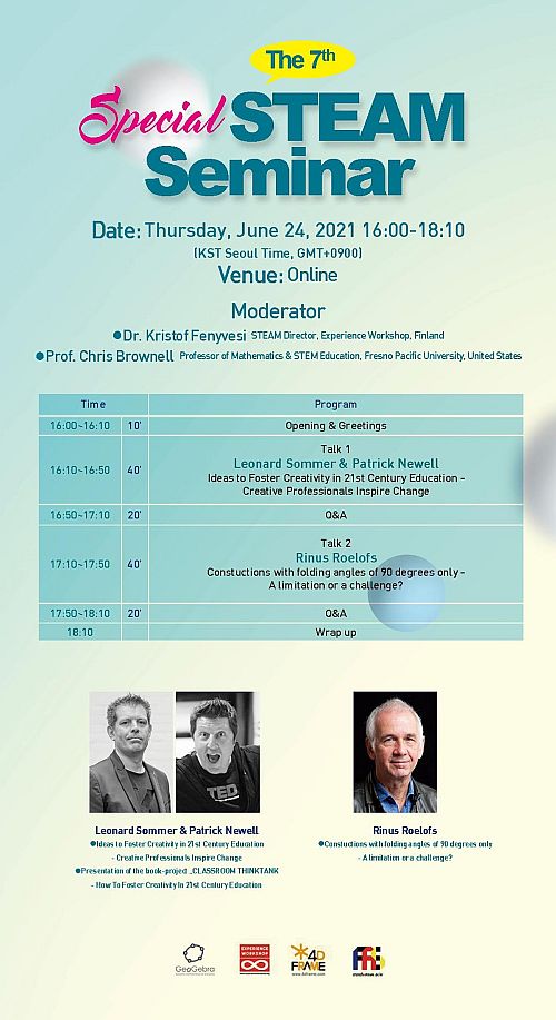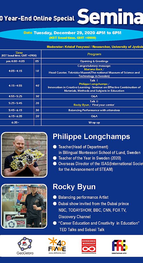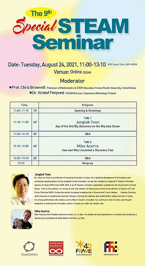 Special STEAM Seminars take place once every month. The event is co-produced by 4Dframe Inc. (Korea) & Experience Workshop (Finland).