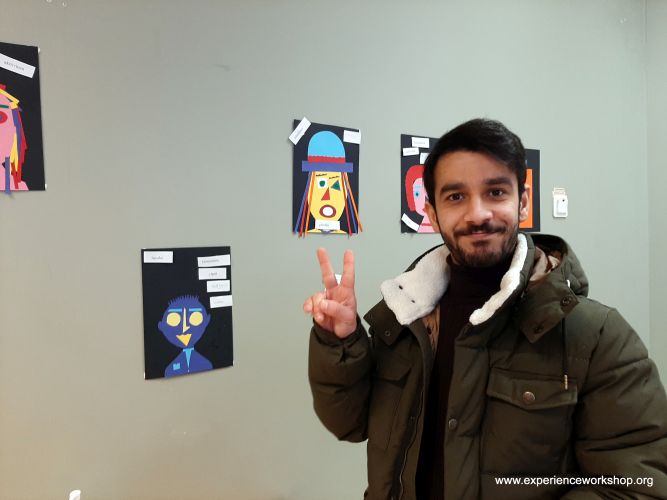 3. Tehdään kasvot kubismin tyyliin. Työskentelyssä erilaiset muodot ja värit ovat tärkeitä. On hyvä muistuttaa, että ei ole oikeaa tai väärää tapaa tehdä.