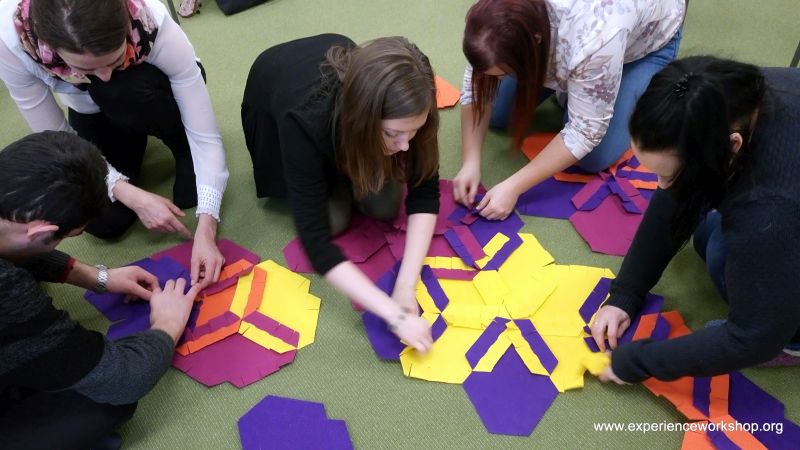 Kokoamisharjoitukset integroivat matematiikan, taiteen, kulttuurin ja todellisen elämän. Experience Workshopin materiaalit on suunniteltu helpottamaan hahmotuskyvyn kehittymistä, symmetrian ja muutosten kokemuksellista ymmärtämistä sekä ongelmanratkaisua matematiikassa, taiteessa, suunnittelussa, tosielämän tilanteissa ja monikulttuurisissa teemoissa. Experience Workshopin GianTiles- palat ovat matemaatikko Paul Gailiunaksen suunnittelemat. Palojen geometriset muodot ja värit inspiroivat osallistujia luomaan symmetristen kuvioiden lisäksi esittäviä kuvia, kuten kukkia, eläimiä, tähtiä tai kasvoja.