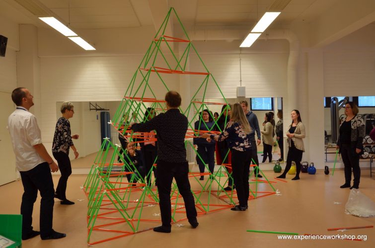 Kaikkien osallistumista tarvittiin jättisuuren, 4D Frame -materiaaleista koostuvan Sierpinskin kolmion rakentamiseen. Harjoitus osoittaa, kuinka pitkälle yhteistyöllä pääsee ja kuinka luovuus vaikuttaa lopputulokseen.