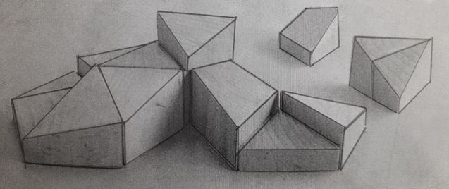 - Hajtogasd meg az A4-es papírlapokat piramispárokká a képnek megfelelően.
