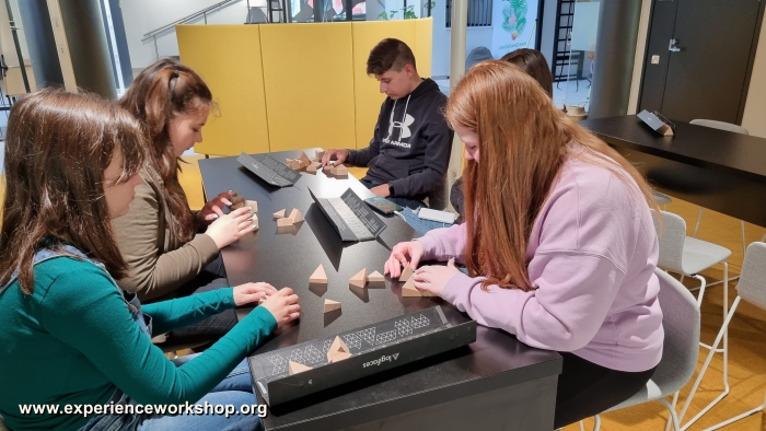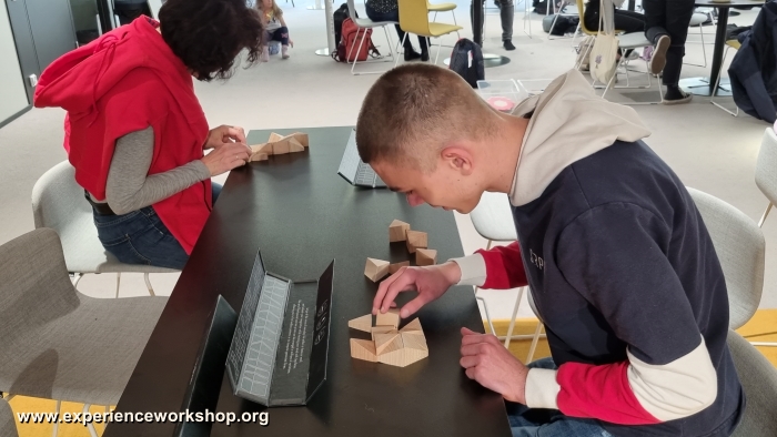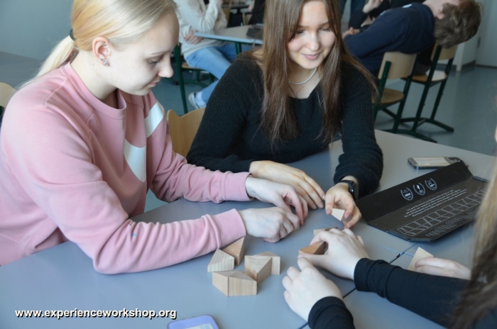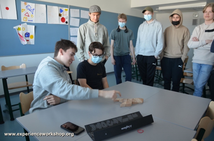 The rule of the game is to build a continuous surface using up all blocks without leaving any gaps or breaks between them. The most common solution is a big triangle, but there are practically endless variations of the game. The tool offers a nearly infinite logical complexity, complicated mathematical and geometrical problems.