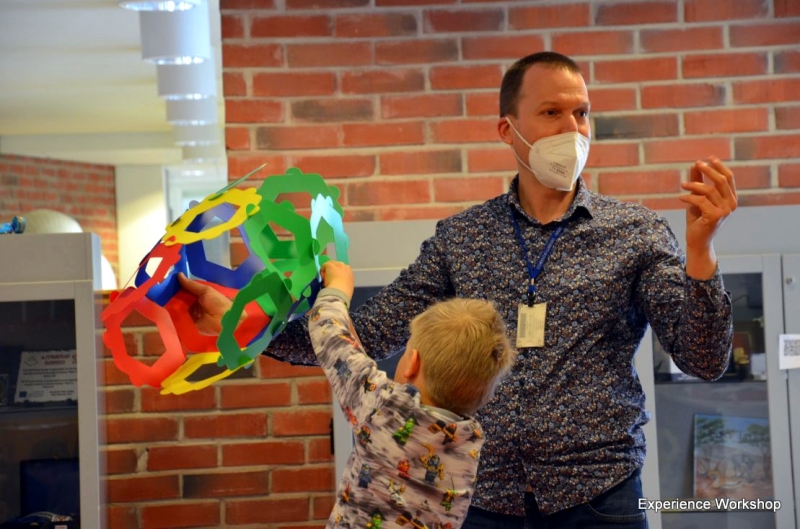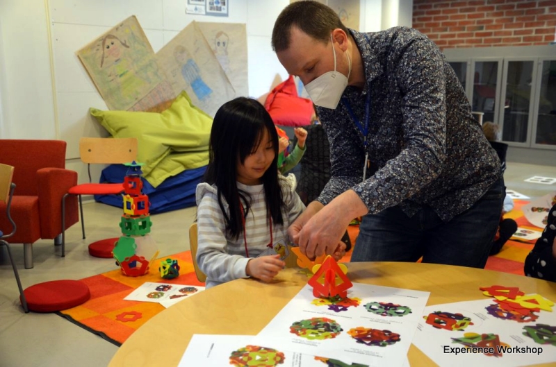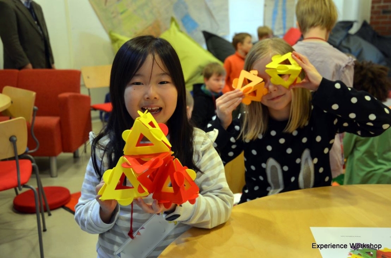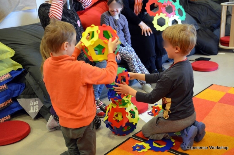 Our idea was to introduce Platonic solids with the help of the colorful Itsphun toolkit. Itsphun is a system of interlocking shapes which contains triangular, square, pentagonal and hexagonal pieces.
