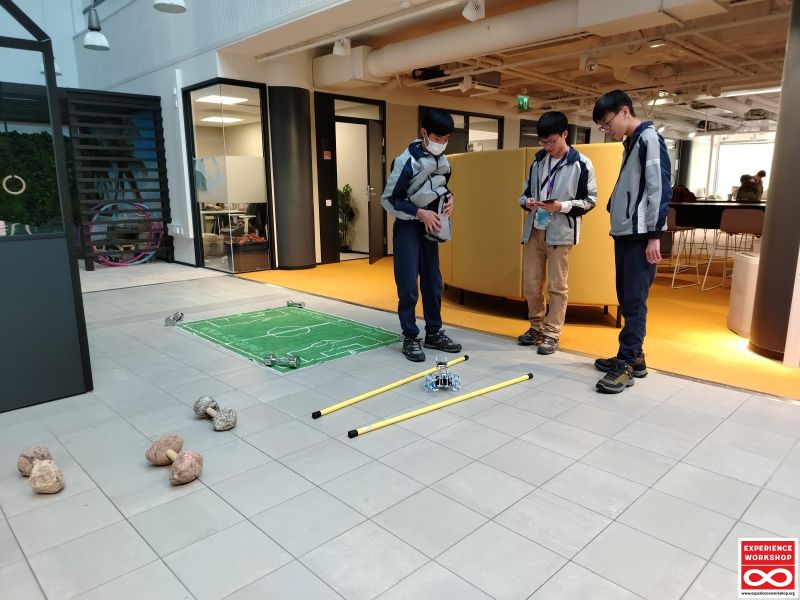 Following the introductory session, the group participated in a STEAM workshop: Creative Hands-on Robotics, also led by Dr. Fenyvesi. This workshop is a core part of Experience Workshop’s methodology. Instead of a lecture on robotics, the session required the students to work directly with materials, combining creative design with technical problem-solving. The focus was on the process of building and understanding, rewarded by “a testing field” to test the robots’ durability. A short video documenting the workshop’s approach can be viewed here: Creative Hands-on Robotics Workshop.
