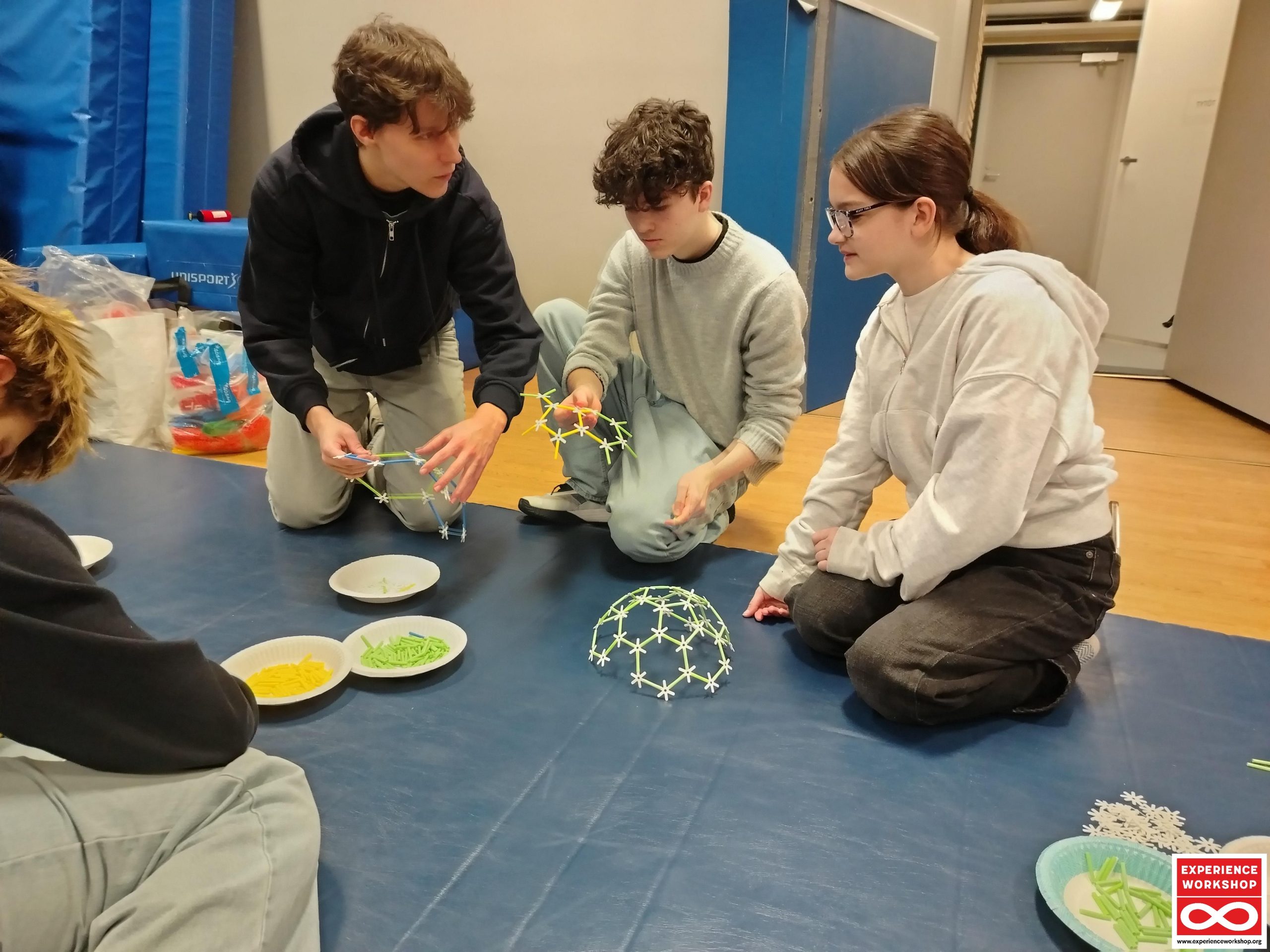 During the last week of January 2026, Experience Workshop had the pleasure of organising a STEAM workshop entitled “From molecules to space bases – structures in nature and technology.” The workshop was conducted by Dr Kristof Fenyvesi and Jukka Lehtoranta from Experience Workshop as a key collaborative exercise during the Erasmus+ student mobility of the Europe 2000 High School from Budapest, Hungary.