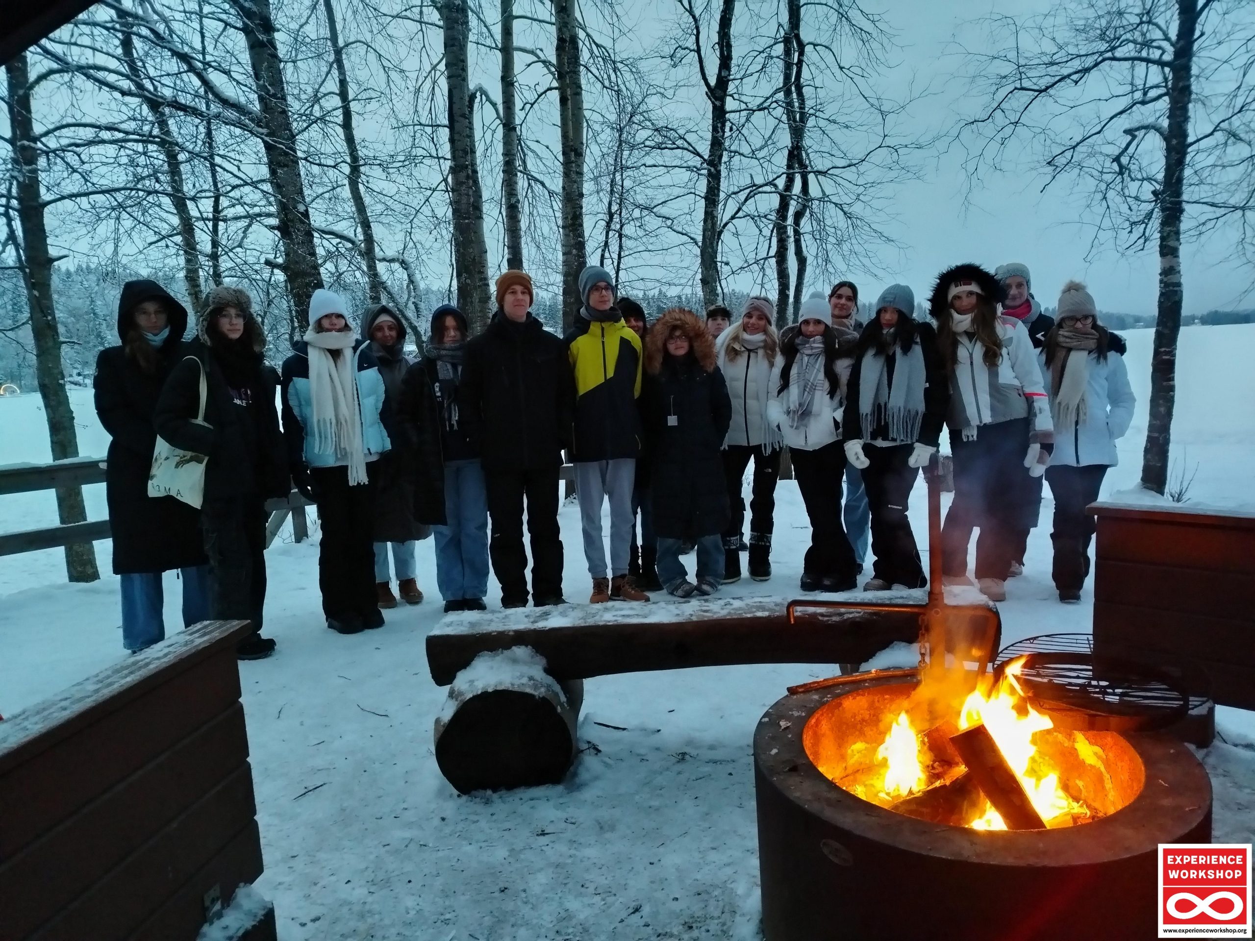 The group enjoyed a guided city tour of Jyväskylä, with a special focus on the city’s rich educational history. They also got to experience a classic Finnish tradition by the lake, trying out the sauna and, for the brave, rolling in the snow. A nature hike through a Finnish forest allowed everyone to explore the winter landscape, with opportunities to grill over an open fire and even walk on the frozen lake. To round off the cultural experience, the group visited the Aalto2 museum and took part in an interactive quiz, where they could win some sweet Finnish treats. It was a week of learning, exploration, and memorable experiences both in the classroom and out in nature.