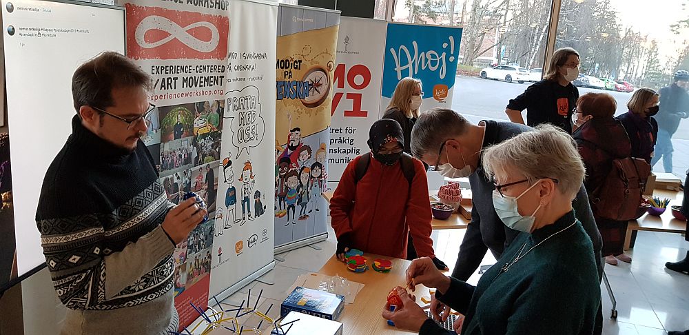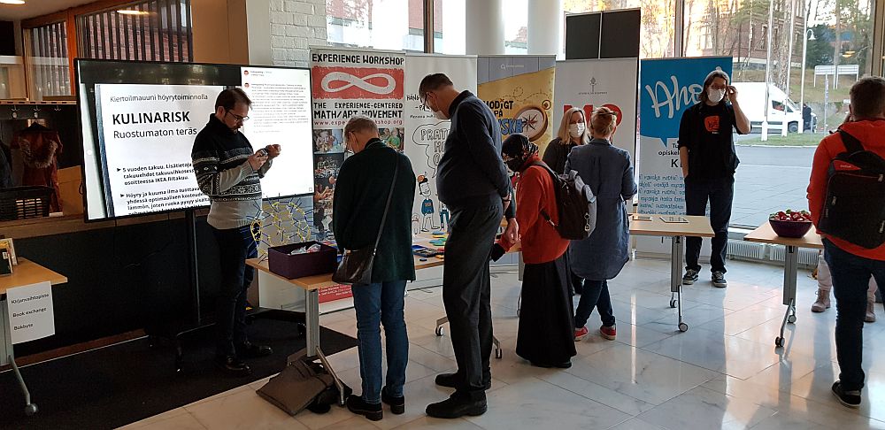 The language campus of the University of Jyväskylä celebrated the Swedish Day on Monday, November 8, with presentations in the main building of the university, which illustrated the benefits and joys of Swedish language skills from many perspectives. Also the Hallå STEAM! project set up its own stand. The stand featured math games – this time in Swedish. Quite a few curious passers-by stopped at the stand to try the games under the direction of Osmo Pekonen and Kristóf Fenyvesi.