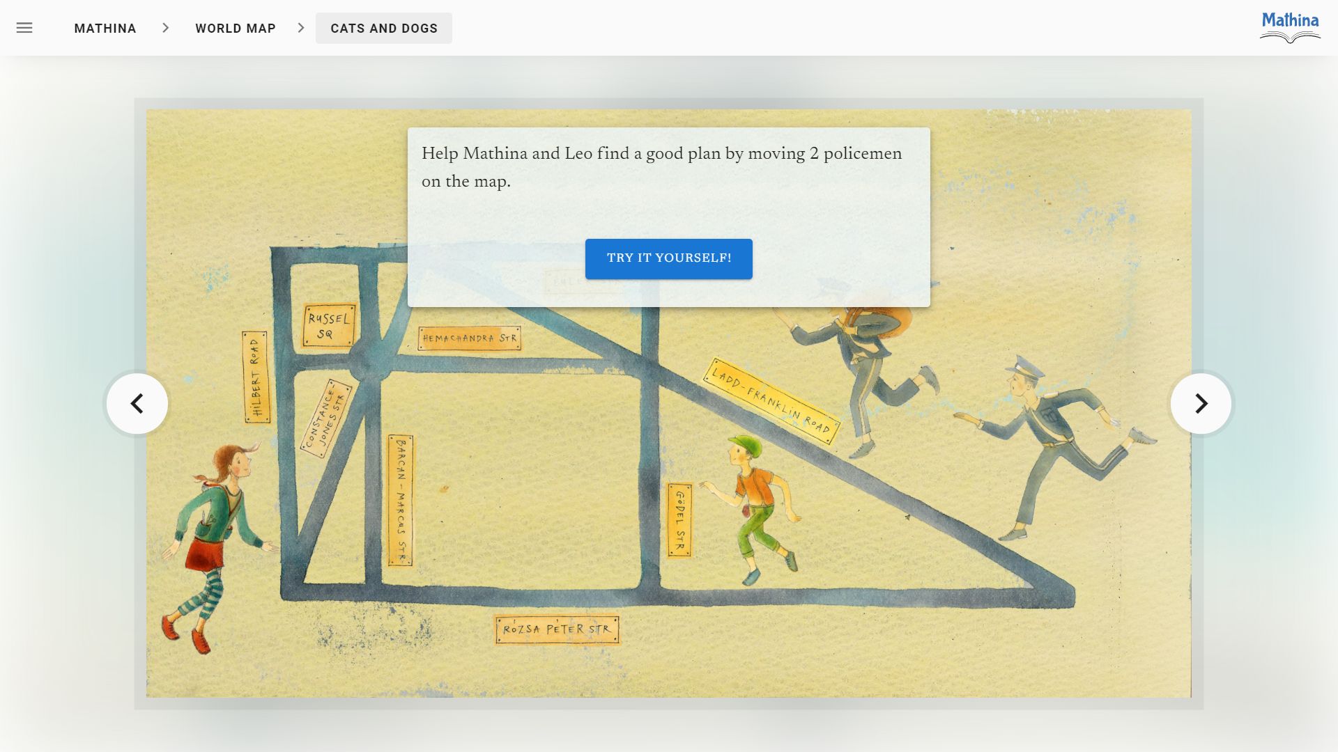 From mathina.eu you can enter the story world by clicking on Discover the world of Mathina. Enter and choose one of the 16 stories!