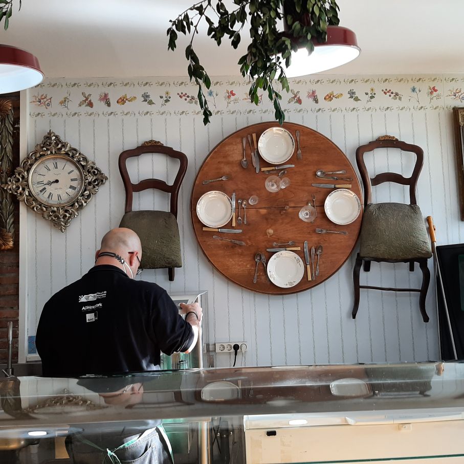 As the Erasmus+ participants were sitting together enjoying our lunch served by the attentive InOut staff, our venue provided a feast for the eye and the imagination. Antique memorabilia with reinvented positioning was all about us. A revamped take on an austere portrait painting positioned on the ceiling comes to mind, as does a tableau of a table ready for high tea – suspended from the wall at a 90° angle from what one would expect. What could be seen and felt was this was a place which respected the background of what each had to share and curated the parts to work in a way which created paths forward for each.